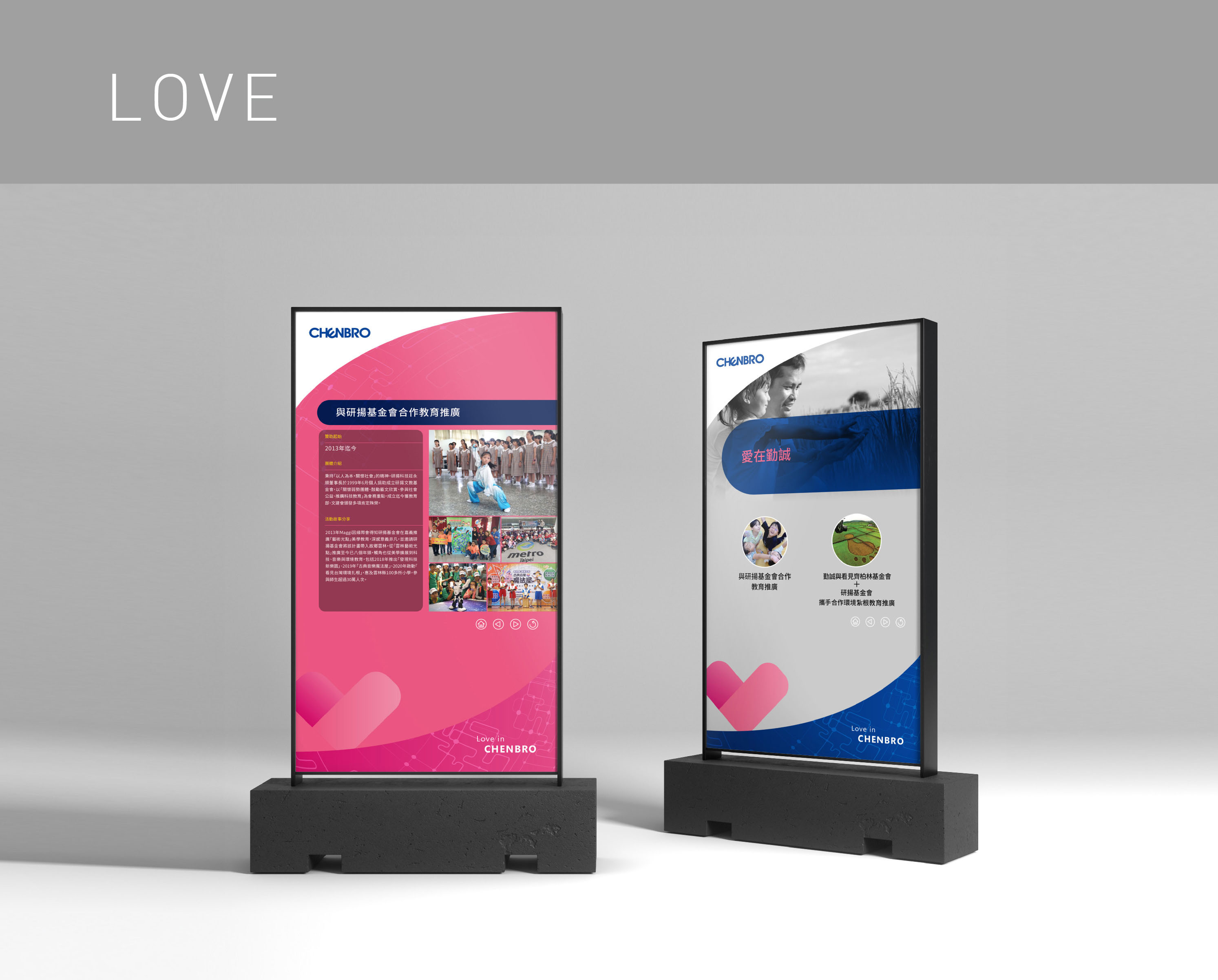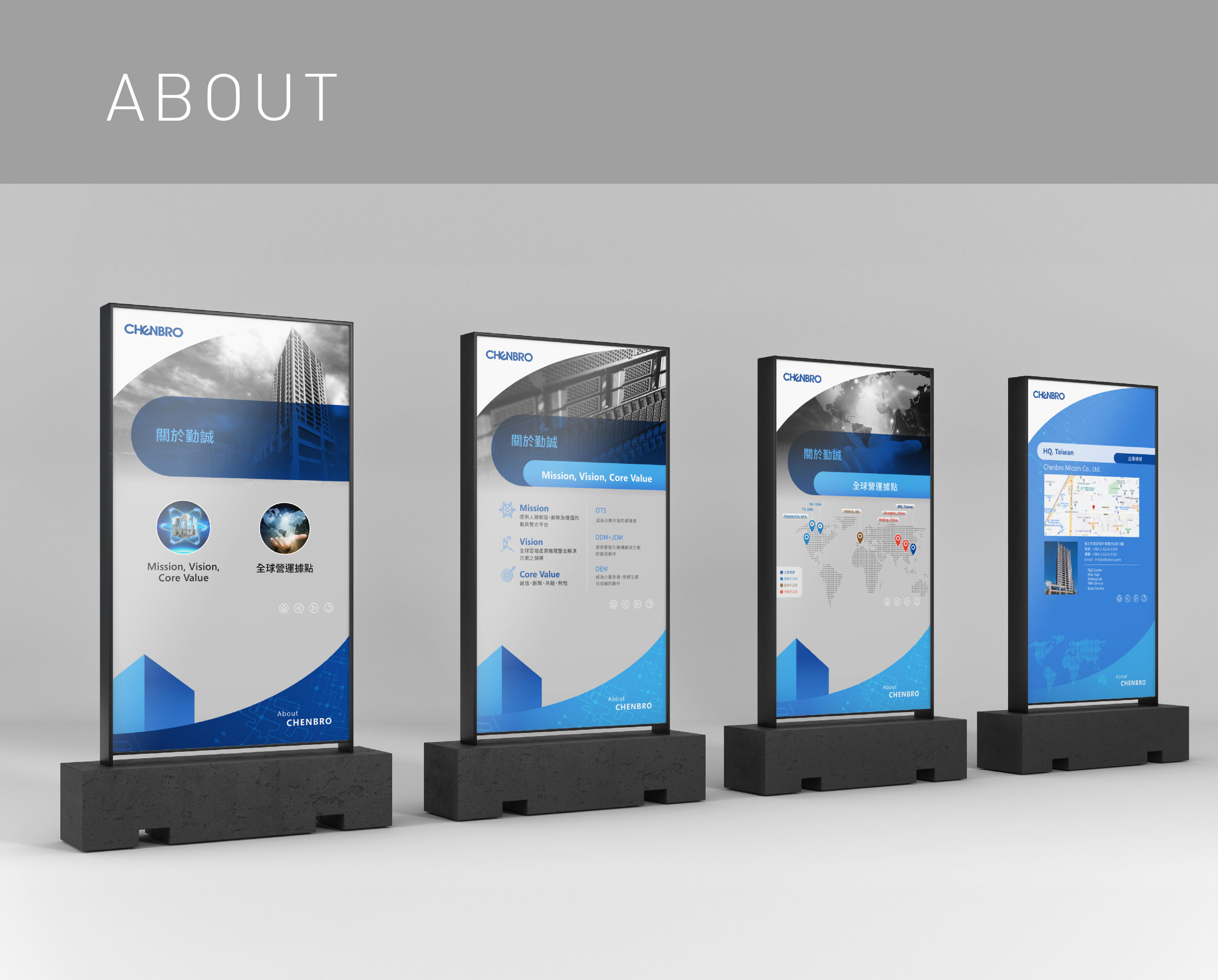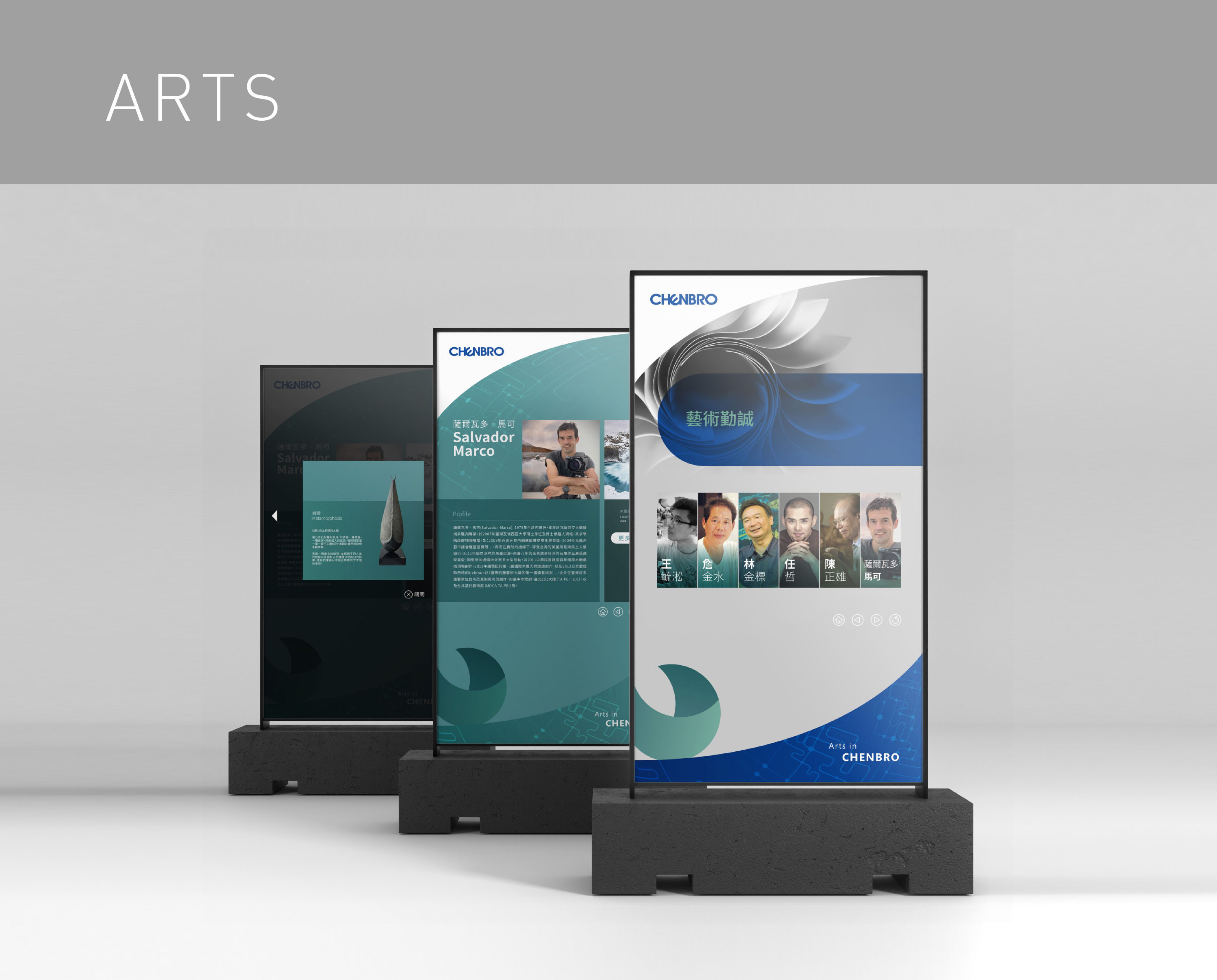 勤誠興業將公司資訊、發展概況、公司理念、公益合作、員工文化與對藝術支持,以多媒體方式串連一起。各主題的顏色在首頁中便可看到,並搭配不同icon圖,也讓看的知道在哪個主題中。