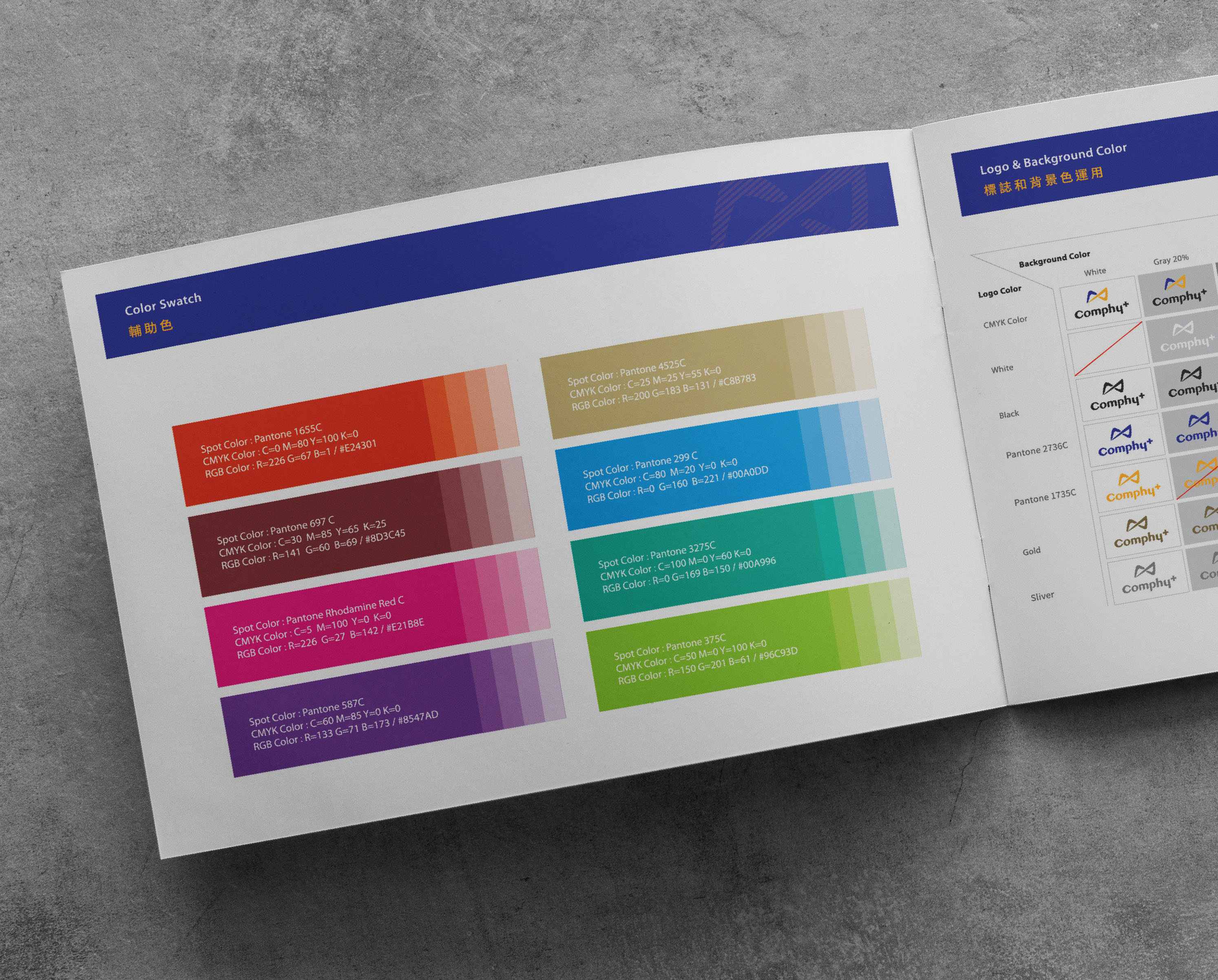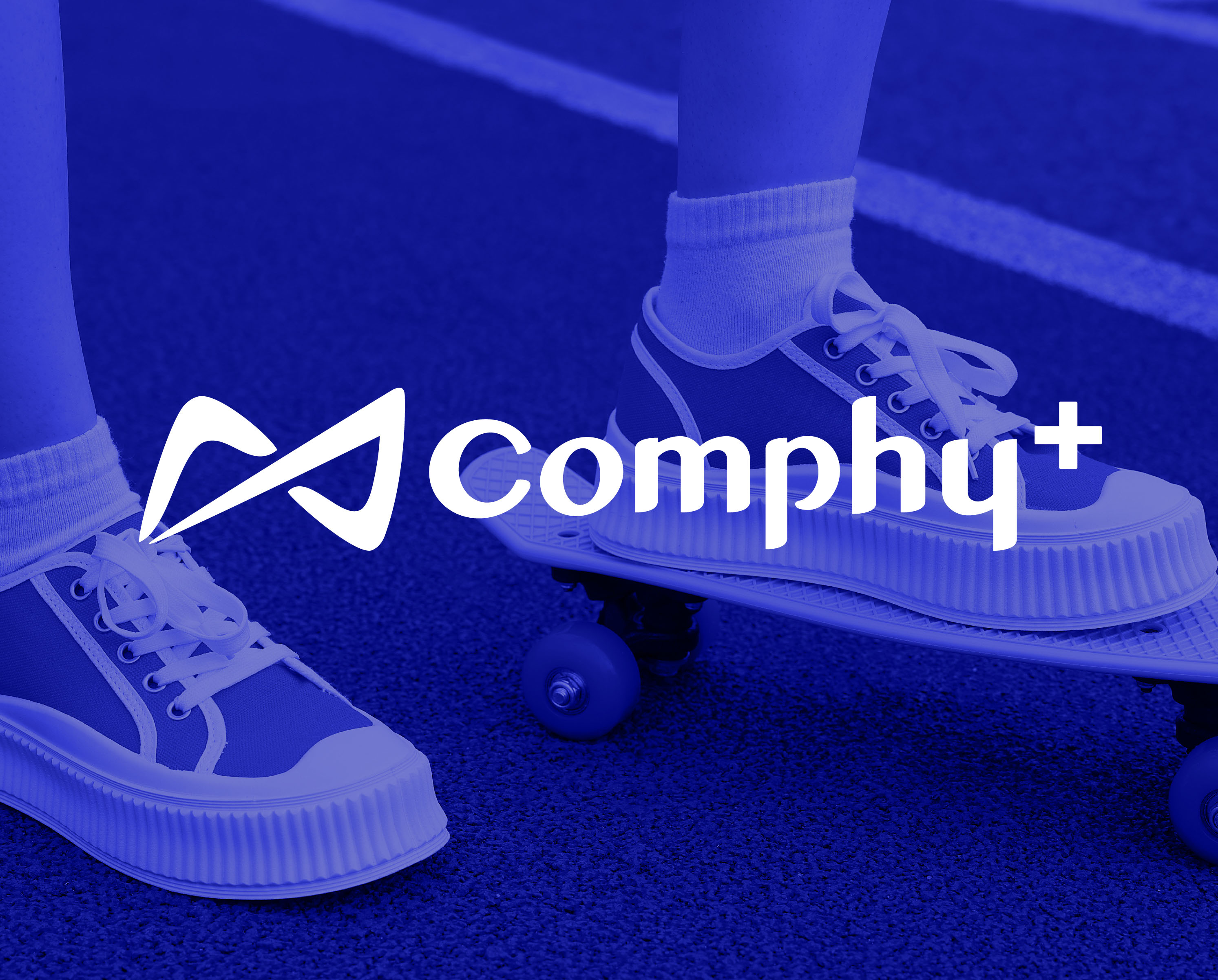 「每天運動一點點,健康就多一點點。」Comphy+ 從「人對健康的期待」出發,以人體工學與運動力學為基礎,結合高科技與精密工匠技術,追求「讓穿著絕對舒適健康」的產品理想。以「C+P」組成無限可能,「Com」代表Comfortable是舒適、舒服,「Phy」代表Physical是自然、健康,「+」強調無限可能,從「人因工學」與「人的需求」出發,有科技、機能、美麗、保養、環保等多方面。標準色設定是躍動知識的「藍」與健康行動的「黃」。