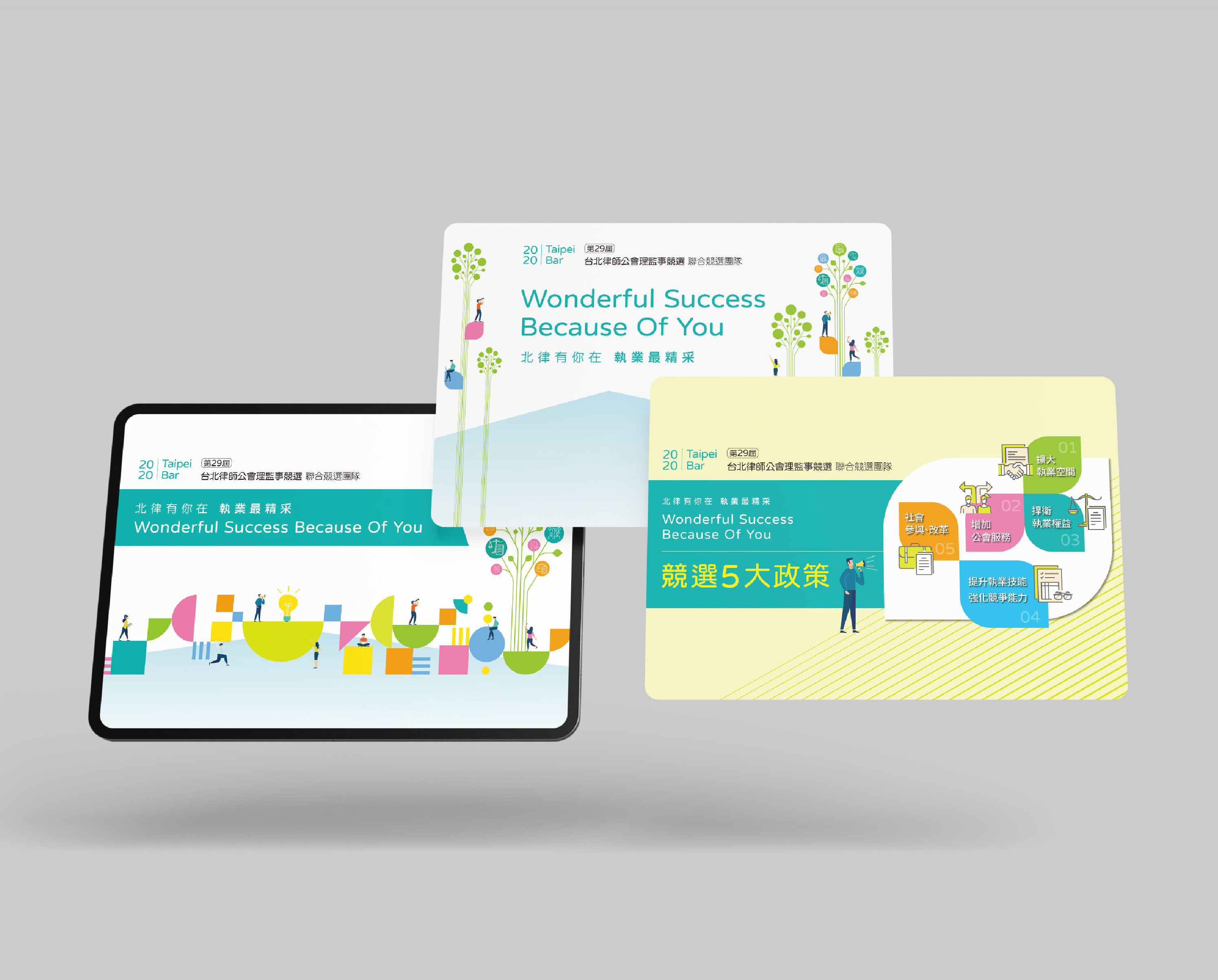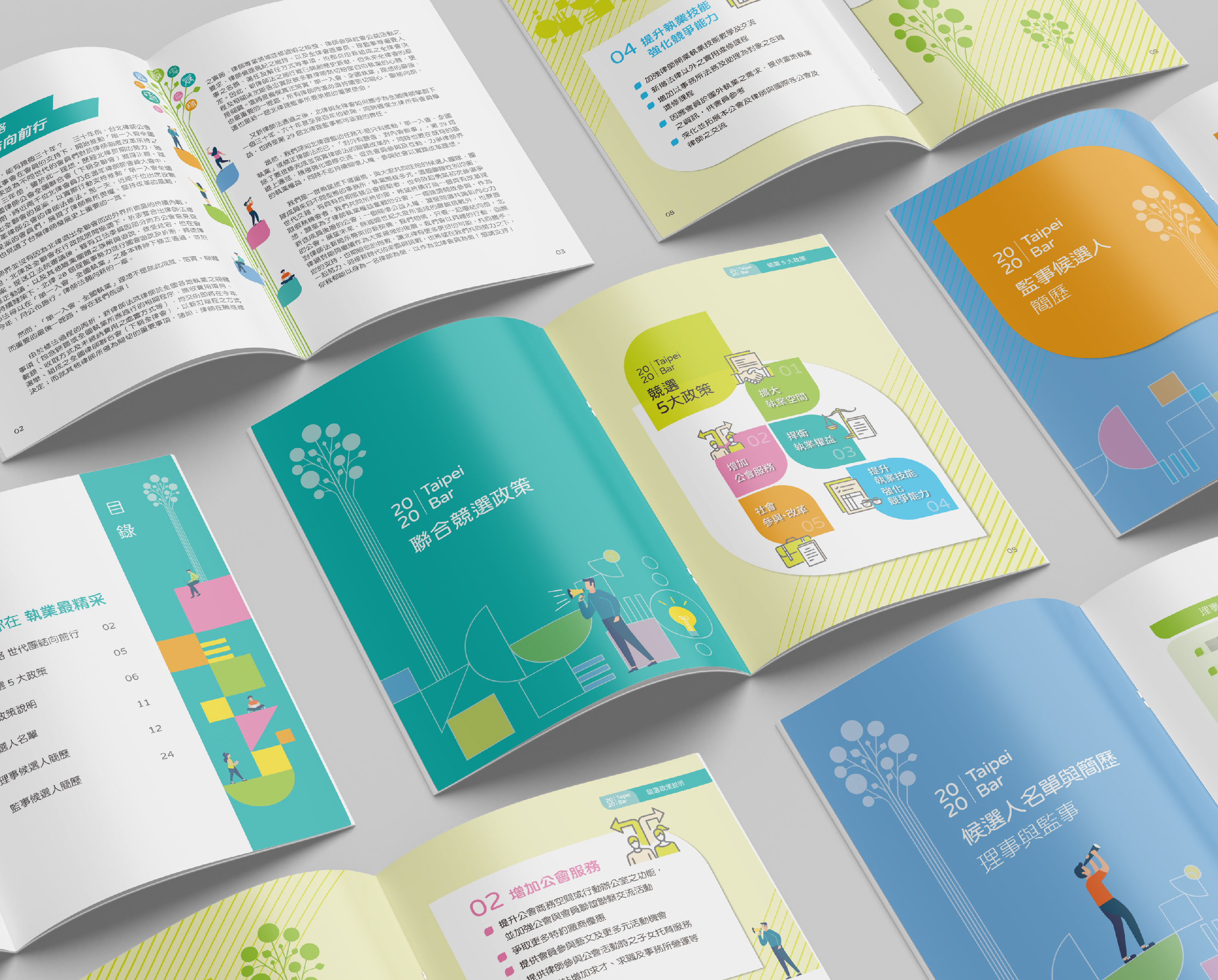 主視覺以「生命之樹」為概念,希望大家能在台北律師公會,提供的好政策之下,開枝散葉,越來越好! 文宣中運用到很多葉子的形狀是與「生命之樹」的主概念相呼應。