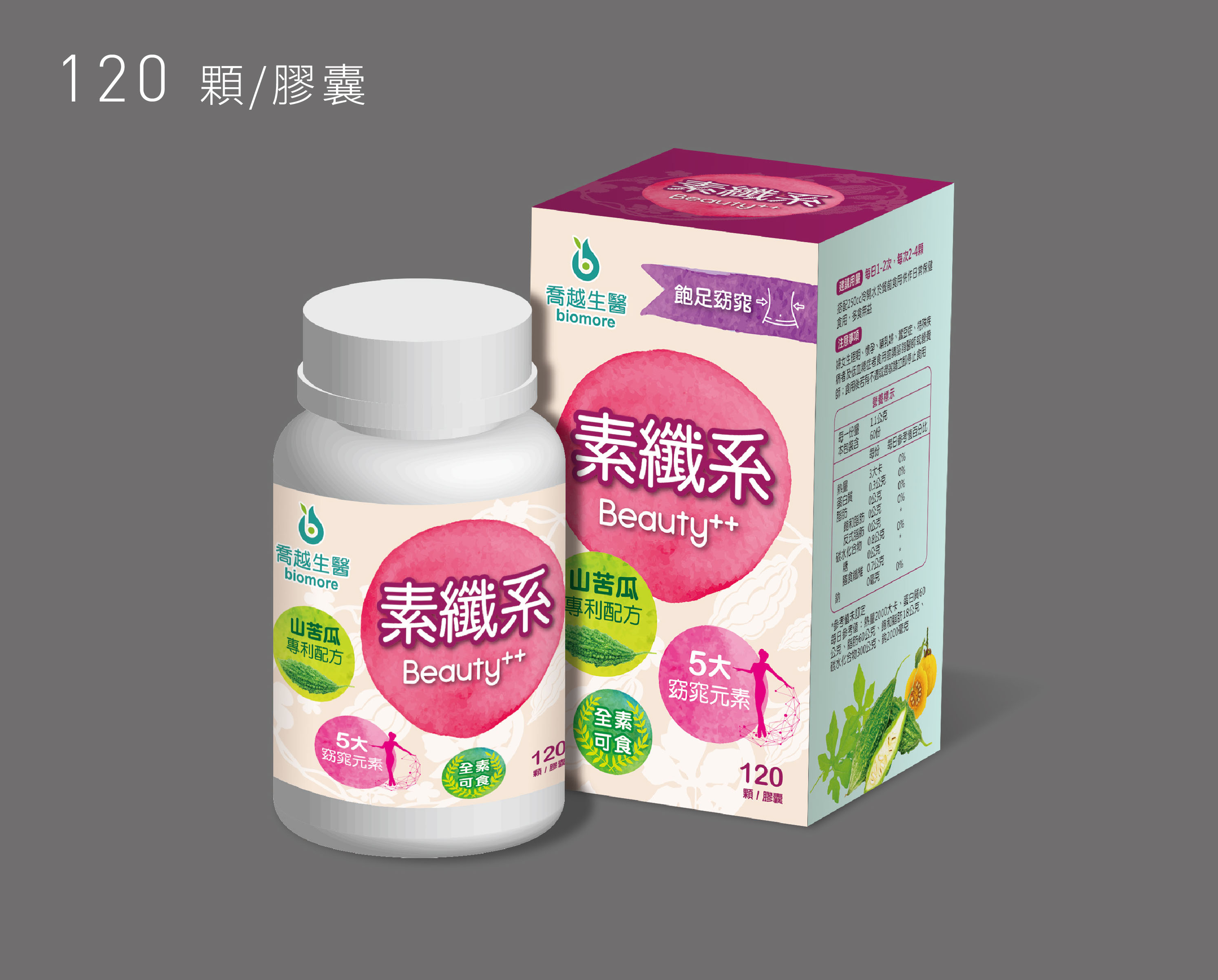設計以水彩的方式,搭配苦瓜的圖騰表現健康與天然。