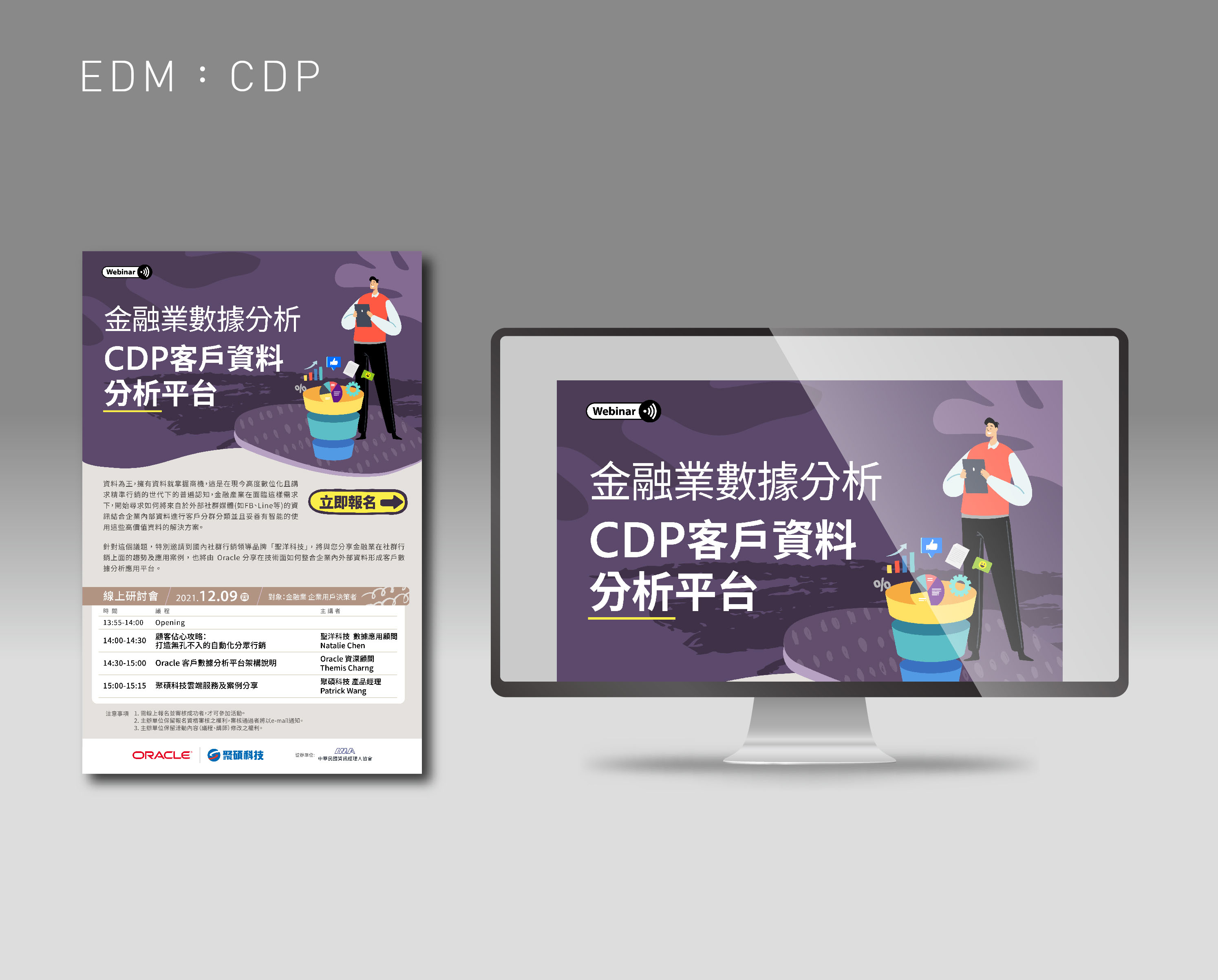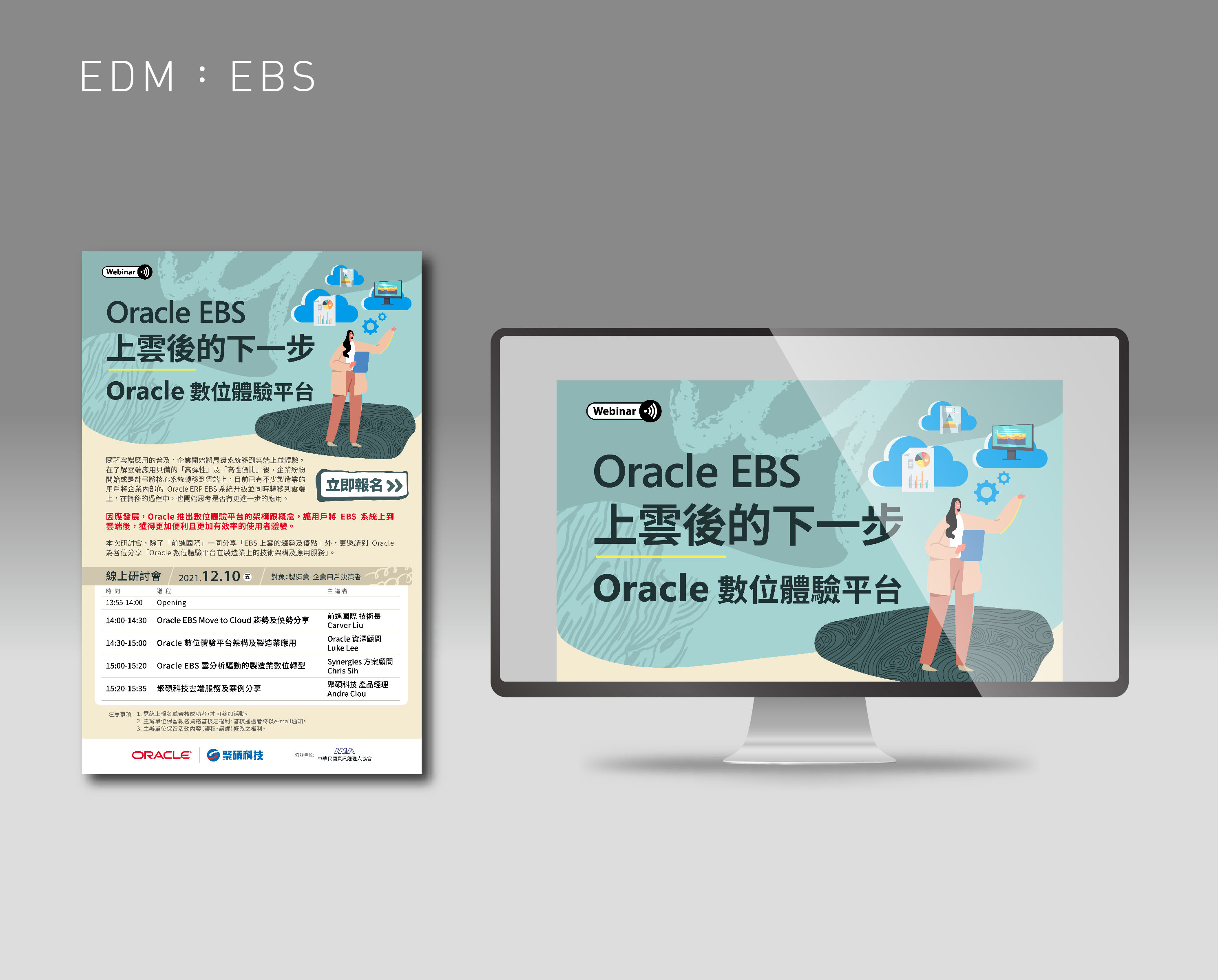 雙方合作的研討會主題特性來進行設計,風格以插畫為主。